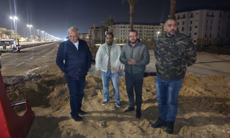 رئيس شركة مياه مطروح يتابع إصلاح كسر بخط 1000 مم الناقل للمياه بالعلمين