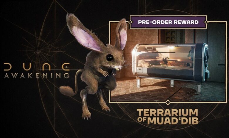 تمّ تحديد سعر النسخة العادية من Dune; Awakening بـ 49.99 دولارًا أمريكيًا / يورو. وقريباً، سيبدأ قبول طلبات الشراء المسبقة للعبة، والتي سيحصل اللاعبون بمجرد تقديمها على Terrarium of Muad’Dib، وهو أحد عناصر العرض الجميلة داخل اللعبة، والتي تضم فأر الصحراء الشهير في عالم Dune. ينبغي عليك مراقبة هذا المخلوق جيداً في تحرّكاته، فهو خبير في النجاة عبر الصحراء.