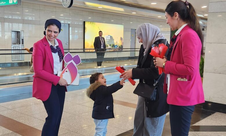 المجلس القومى للمرأة يستقبل سيدات العالم بمطار القاهرة فى يومهن العالمى 8 مارس