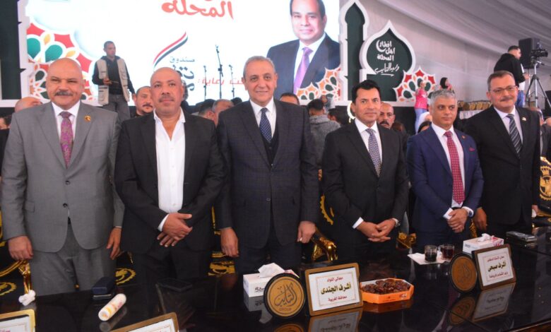 وزير الشباب والرياضة ومحافظ الغربية يشاركان أهالي المحلة في أكبر مائدة إفطار جماعي