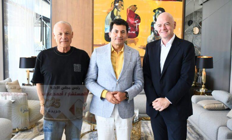 وثمن رئيس “فيفا” ما يقدمه دولة رئيس مجلس الوزراء من دعم كبير لتطوير البنية التحتية الرياضية والسياحية، وحرصه على توفير بيئة احترافية تعكس رؤية واضحة، مؤكدًا أن مصر نموذجًا ملهمًا في الاستثمار الرياضي والسياحي.