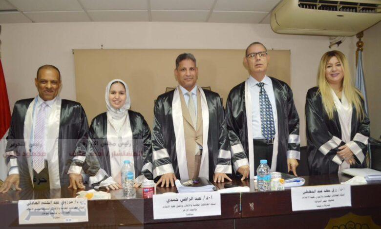 وتكونت لجنة التحكيم والمناقشة من الاستاذ الدكتور رزق سعد عبد المعطي، أستاذ العلاقات العامة بجامعة مصر الدولية، مشرفا ورئيسا، والأستاذة الدكتورة نيرمين زكريا خضر، رئيس الجامعة العربية المفتوحة بالقاهرة، وعميد كلية الإعلام، مشرفا، والأستاذ الدكتور عبد الراضي حمدي أستاذ العلاقات العامة والإعلان، ووكيل كلية الإعلام بجامعة الأزهر، مناقشا، والدكتور مرزوق العادلي، استاذ العلاقات العامة والإعلان المساعد بكلية الآداب بجامعة سوهاج، مشرفا مشارك.