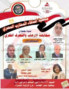 فى إطار الوعى الثقافى ونشره بين فئات المجتمع المصرى، قامت جمعية أصدقاء المحاربالمصرى بإقامة ندوة يوم السبت الموافق السادس من سبتمبر 2025م، على أرض مكتبة مصر العامة بالزاوية الحمراء فى تمام الساعة الرابعة وحتى السابعة مساء، حيث استضافت الجمعية بطلين من أبطال حرب أكتوبر كشهداء على العصر، وهما معالى اللواء أشرف فوزى ومعالى اللواء مجدى شحاته، والدكتورة حنان صلاح الدين عمر الخبيرة البيئية والأستاذ/ أحمد إمام مصحح اللغة العربية بالتليفزيون المصرى، وتضمن اللقاء أبطال من أكتوبر كأعضاء دائمين فى الجمعية، برئاسة رئيس الجمعية معالى اللواء نبيل سويلم وأدار اللقاء الدكتورة ماجدة مجاور محمد رئيس اللجنة الثقافية لجمعية أصدقاء المحارب المصرى، وتقديم الدكتورة منال غانم.