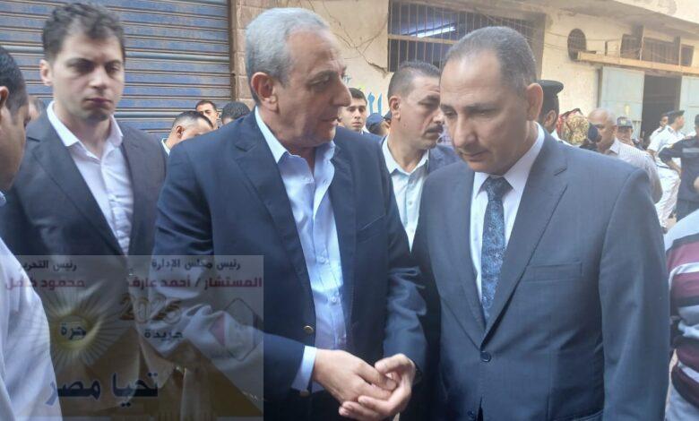 محافظ الغربية من موقع الحادث يتابع جهود رفع الأنقاض بحريق مصبغة المحلة