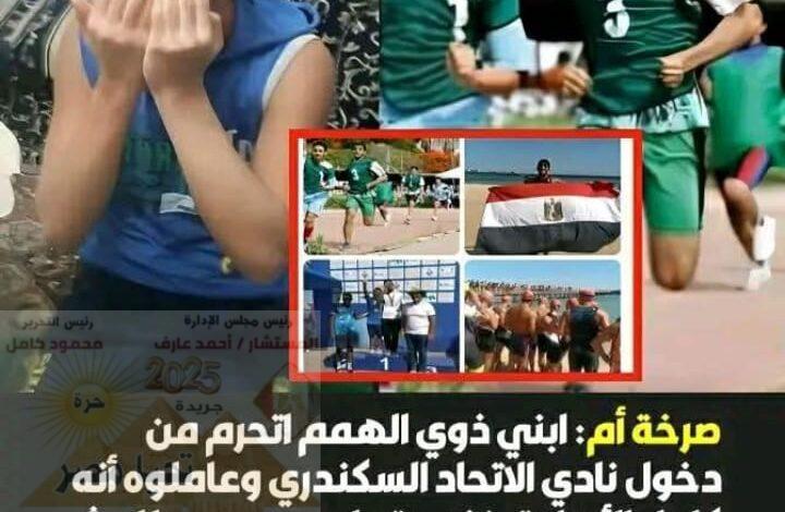 في استجابة فورية لما تم تداوله عبر مواقع التواصل الاجتماعي بشأن استغاثة والدة أحد أبطال ذوي الهمم بنادي الاتحاد السكندري، وجَّه الدكتور أشرف صبحي، وزير الشباب والرياضة، بالتدخل الفوري لحل المشكلة وتوفير مكان مناسب لتدريب اللاعب بشكل عاجل، وذلك بالتنسيق مع مديرية الشباب والرياضة بالإسكندرية، التي قامت بالتواصل مع مركز شباب النصر لضم اللاعب للتدريب ضمن أعضاء المركز، تحت إشراف نفس مدرب ألعاب القوى الذي كان يتولى تدريبه، مع التنسيق مع نادي الاتحاد السكندري لإعادة اللاعب للتدريب بعد استيفاء المتطلبات اللازمة لذلك.