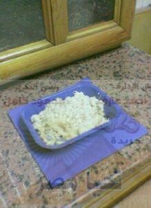 4- توضع المقادير كلها ( البطاطس واللبن والحليب الدافىء والجبن المطبوخ) فى وعاء وتفرك أو تضرب بالخلاط .