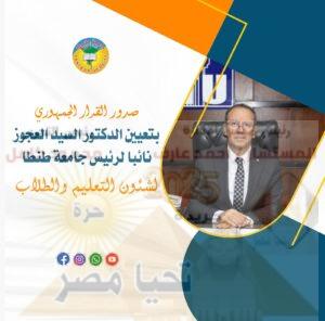 صدور القرار الجمهوري بتعيين الدكتور السيد العجوز نائبا لرئيس جامعة طنطا لشئون التعليم والطلاب