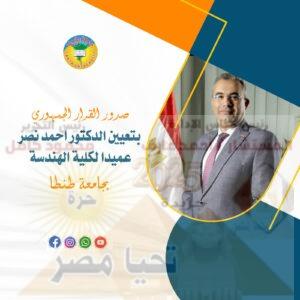 صدور القرار الجمهوري بتعيين الدكتور احمد نصر عميدا لكلية الهندسة بجامعة طنطا
