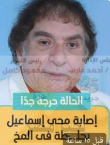 على الفور، تم استدعاء أشقائه وبواب العمارة، وبحضور أحد أشقائه تمكنوا من فتح باب الشقة، ليجدوا الفنان محيي إسماعيل في حالة إعياء شديدة وغير قادر على الحركة. حاولوا إسعافه دون جدوى، فتم استدعاء سيارة الإسعاف التي نقلته إلى المستشفى، حيث تبيّن بعد الفحوصات إصابته بجلطة شديدة في المخ استدعت دخوله العناية المركزة، وهو حالياً تحت الإشراف الطبي، وممنوع عنه الزيارة.