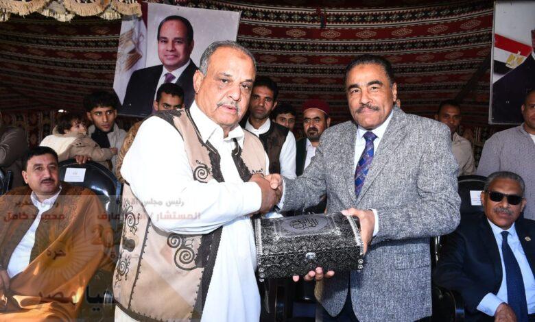 وفى نهاية الاحتفال قام المحافظ بتكريم الأستاذ عبد الحميد القناشى رئيس لجنة الحفاظ على التراث ، والفارس رزق بوعبيد ومجموعة الفرسان والشعراء المشاركين في مهرجان الفروسية والتراث