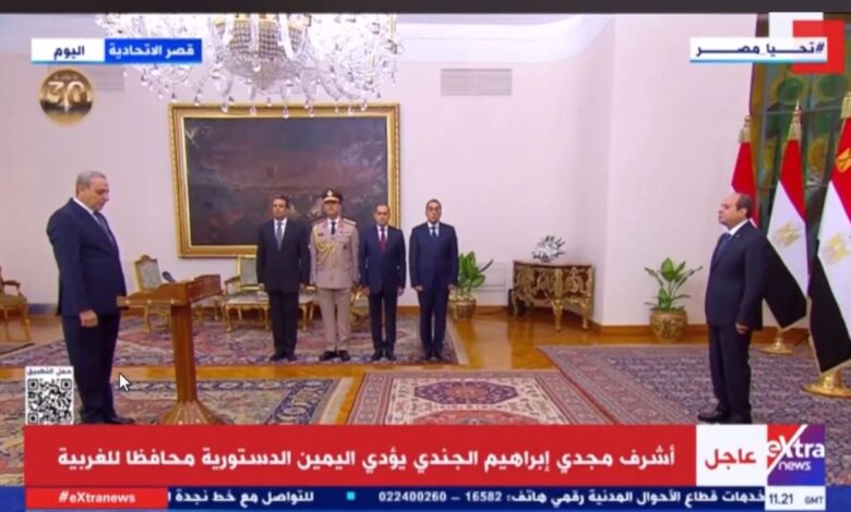 أدى اللواء أشرف الجندي اليمين الدستورية، اليوم الأربعاء، أمام الرئيس عبدالفتاح السيسي، لتولي منصب محافظ الغربية