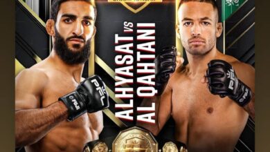 نزال حماسي يجمع القحطاني والحياصات مرة أخرى في نهائي “دوري المقاتلين المحترفين” بالرياض.